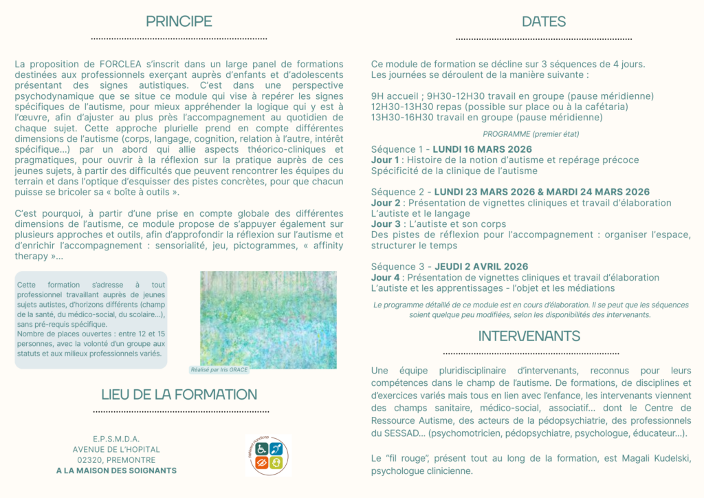 Pour 2026, FORCLEA se lance dans la création d’un nouveau module de formation intitulé : « L’enfant, le spectre autistique et le professionnel ».