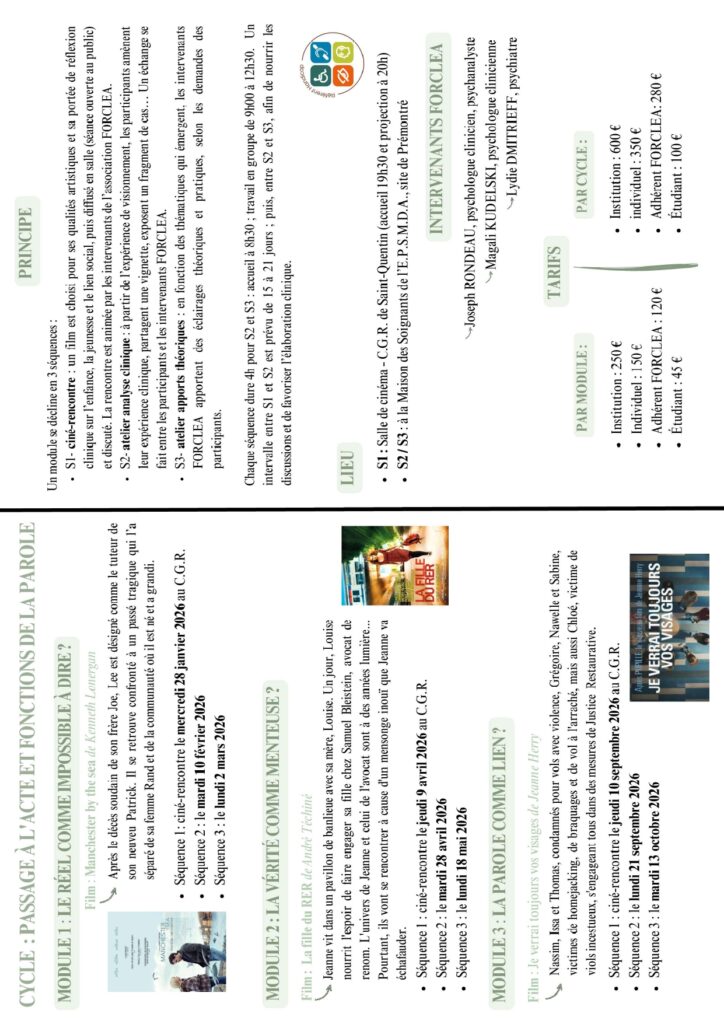 Un second module ayant pour thème « Passage à l’acte et fonctions de la parole » est en cours pour l’année 2026. Les inscriptions sont ouvertes jusqu’au 6 février 2026 !
